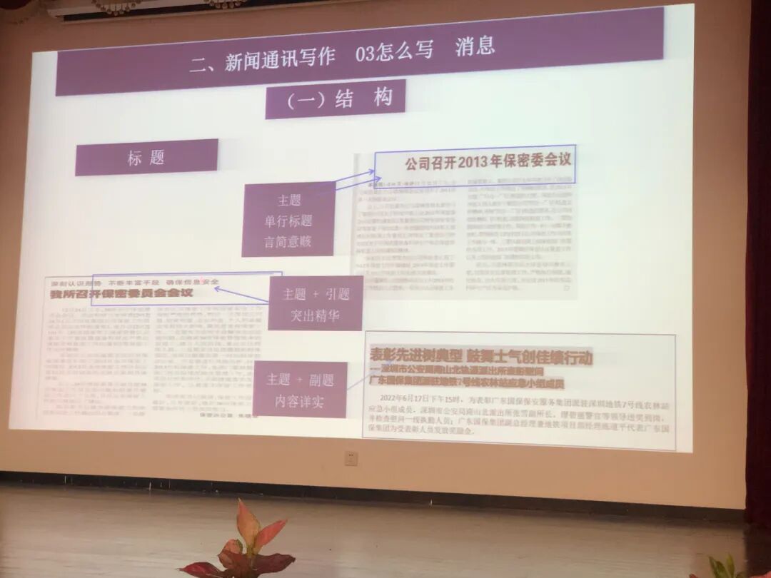 同行中保国安的王星民详尽地介绍了(新闻)消息与通讯的区别。对新闻通讯稿的写作要点、方法、技巧作了毫无保留的分享,精选了部分优秀作品进行了独到、精辟的分析与点评,在加深了解及巩固新闻通讯稿的写作上对大家都有很大的帮助。