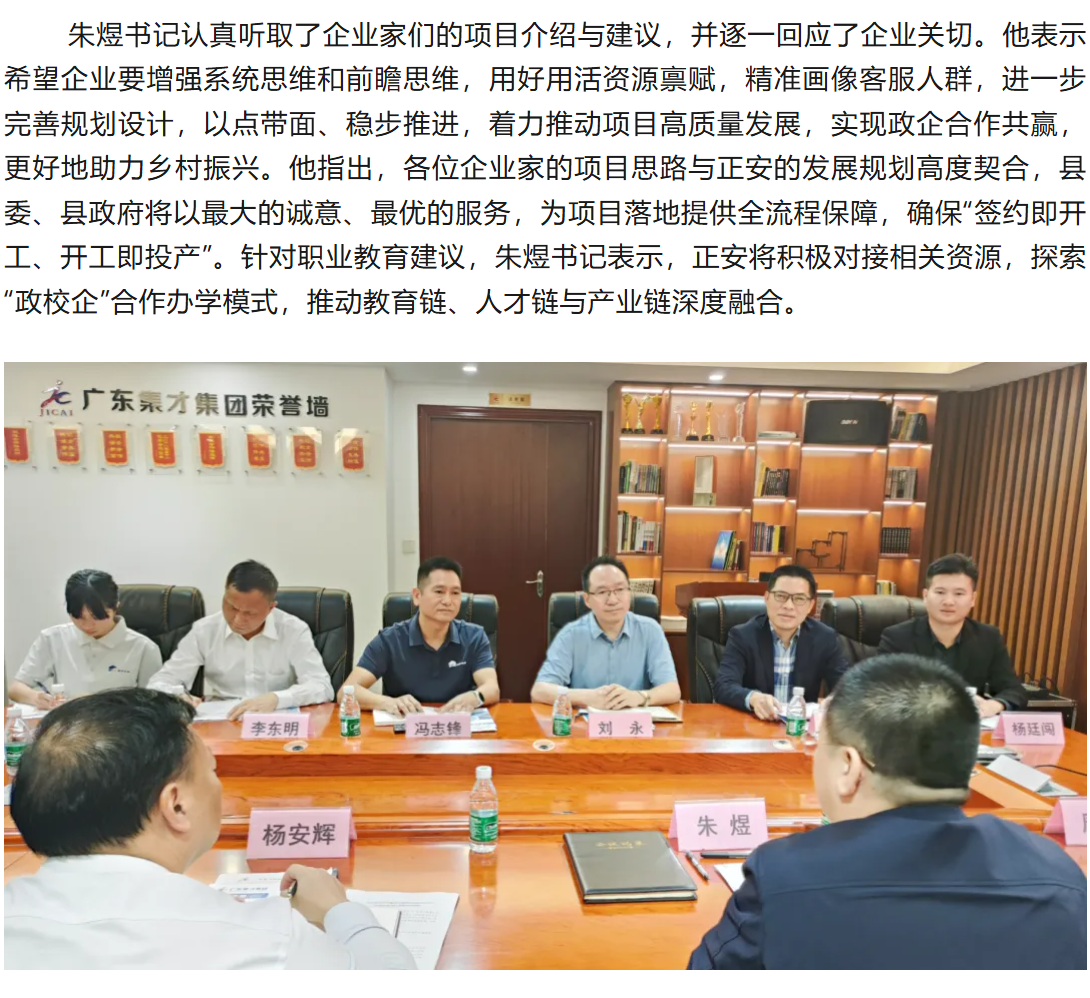 集才新闻 | 热烈欢迎正安县人民政府县委书记朱煜一行莅临我司指导工作并成功举办正安县莅穗招商引资座谈会!